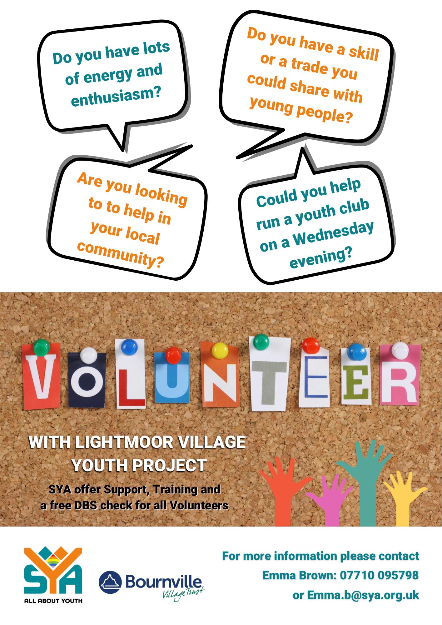 If you would like to find out more about becoming a youth club volunteer, please contact Emma Brown on 07710 095798 or email [email protected]